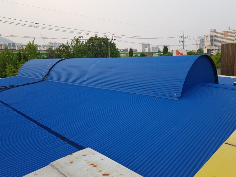 인천시 효성동에 위치한 SK주유소로 캐노피의 누수로 인해 칼라강판 스레트골로 지붕개량