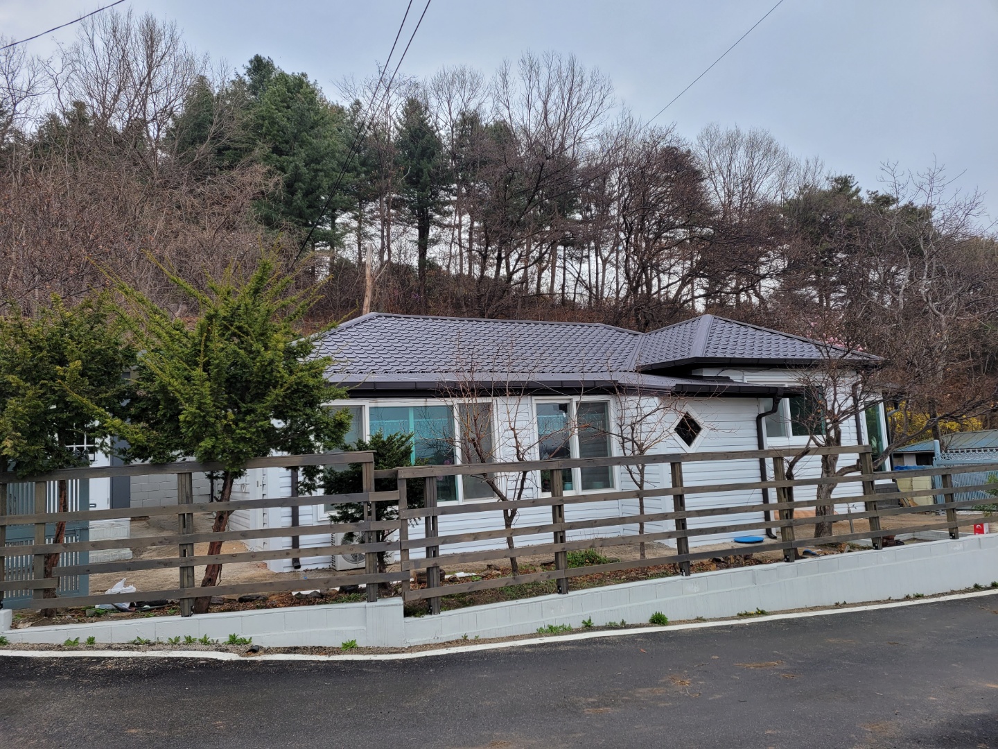 용인시 원삼면 사암리. 슬레이트골 지붕을 아연도칼라강판 평기와골로 덮방시공함.
