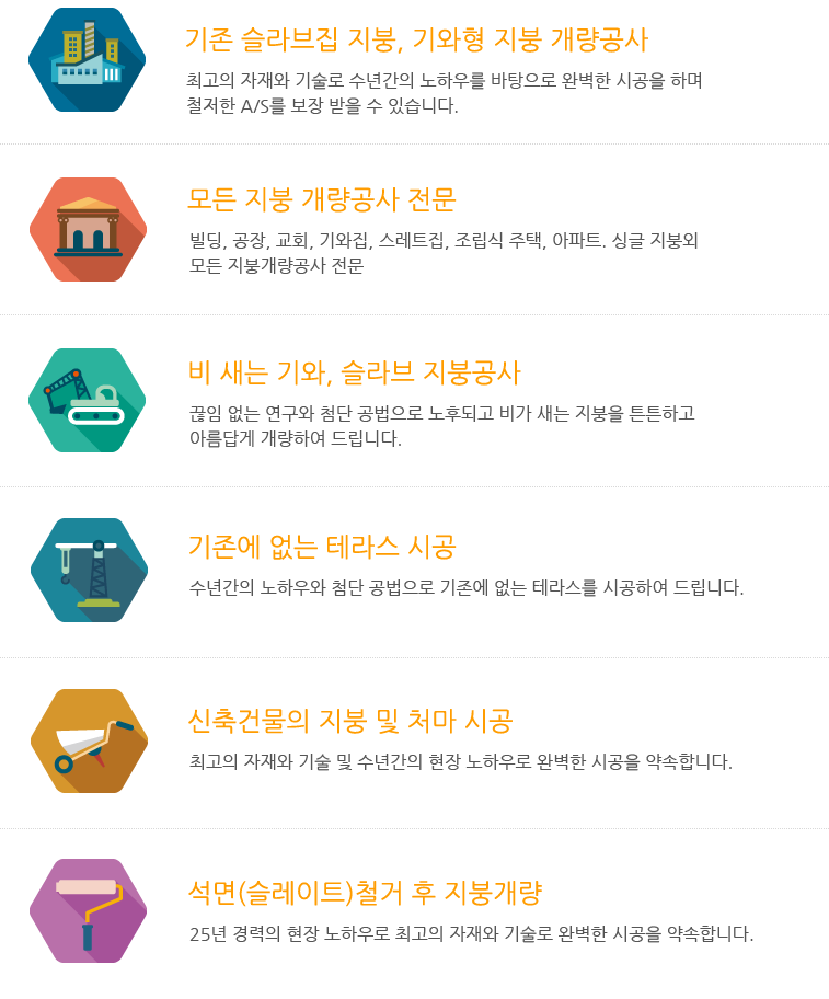• 학교, 아파트, 빌라, 주택 , 빌딩, 관공서, 공장, 상가, 창고, 돈축사, 신축건물 외 지붕개량은 지붕전문회사에서!
